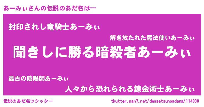 | 胡散臭い通販商品みたいなあだ名 | 『絶対に幸福をもたらす健康食品…その名も「あーみぃ」』 |