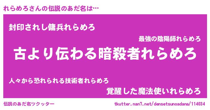 | ヘコむあだ名 | 『れらめろ(苦笑)』『れらにゅー』 |