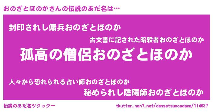 | 意味不明あだ名 | 『とにかく怪しいおのざとほのか』 |