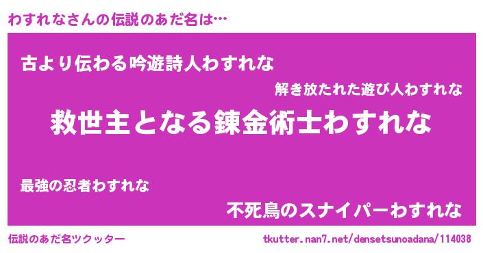 | ヘコむあだ名 | 『わすれな(震え声)』『わすにー』 |