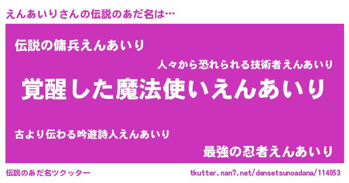 | 意味不明あだ名 | 『とにかく怪しいえんあいり』 |