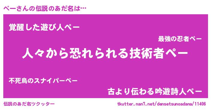 | ヒーロー風カッコイイあだ名 | 『正義の使者ペー』『幻影騎士ペー』 |