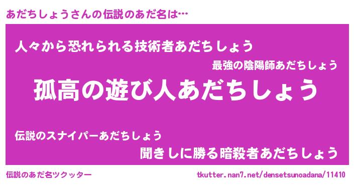 | ヒーロー風カッコイイあだ名 | 『黄金騎士アダ』『ネオアダチショウ』 |