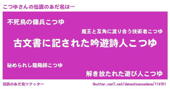 | ヒーロー風カッコイイあだ名 | 『究極戦士コツユ』『ネオコツユ』 |