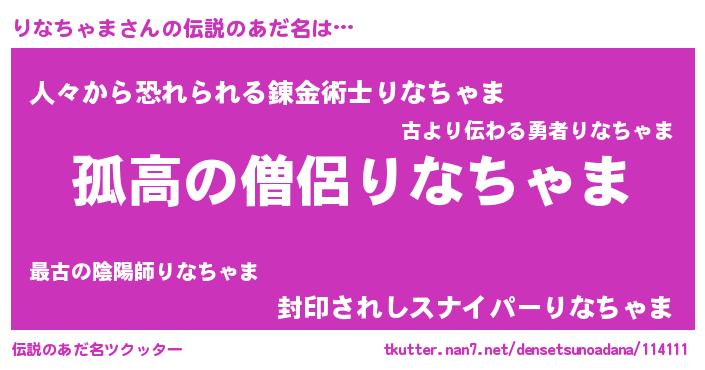 | 意味不明あだ名 | 『とにかく怪しいりなちゃま』 |
