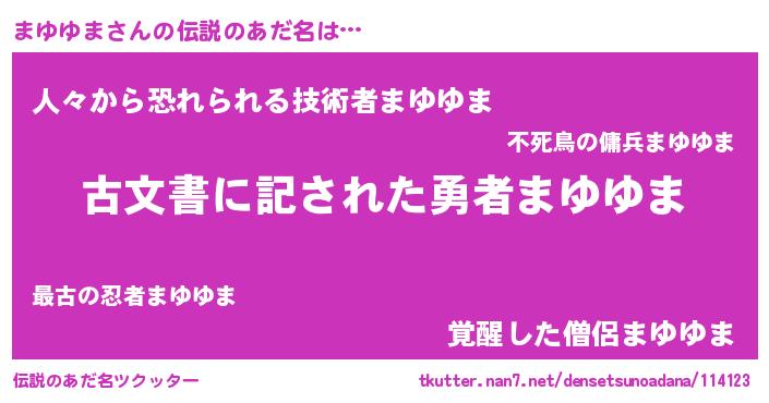 | ヒーロー風カッコイイあだ名 | 『ネオマユユマ』『正義の使者まゆゆま』 |