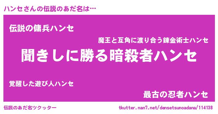 | ヒーロー風カッコイイあだ名 | 『仮面ハンダー』『最強戦士ハンセ』 |