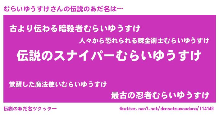| 胡散臭い通販商品みたいなあだ名 | 『必ず成功する霊験あらたかなお札…その名も「むらいゆうすけ」』 |
