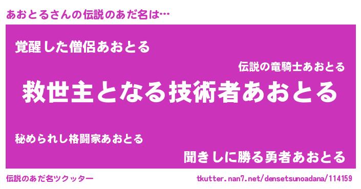 | 男性向けラノベタイトル風あだ名 | 『ノーゲーム・ノーアオトル』 |
