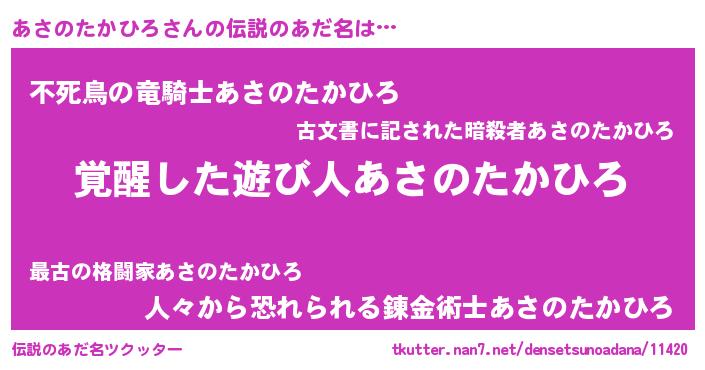 | 意味不明あだ名 | 『とにかく怪しいあさのたかひろ』 |