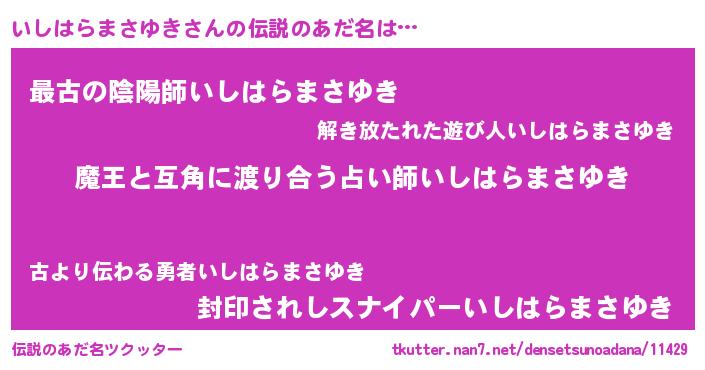 | 意味不明あだ名 | 『自称いしはらまさゆき』 |