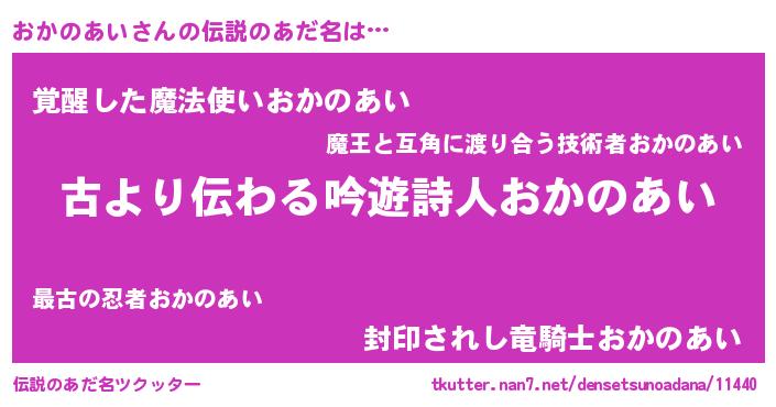 | 意味不明あだ名 | 『住所不定無職おかのあい(3歳)』 |