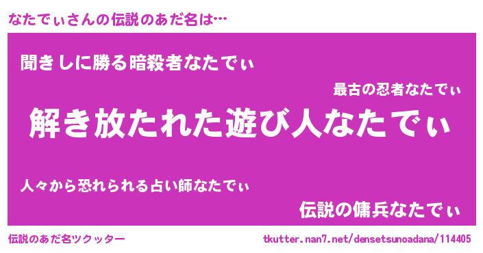 | 意味不明あだ名 | 『とにかく怪しいなたでぃ』 |