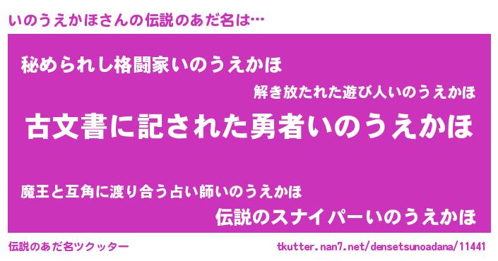 | ヒーロー風カッコイイあだ名 | 『ネオイノウエカホ』『仮面イノダー』 |