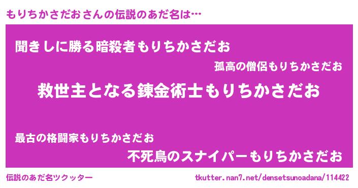 | ヒーロー風カッコイイあだ名 | 『天空の使者もりちかさだお』 |