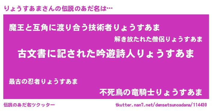 | 欧米人風あだ名 | 『りょうすあま・ステッグマイヤー』 |