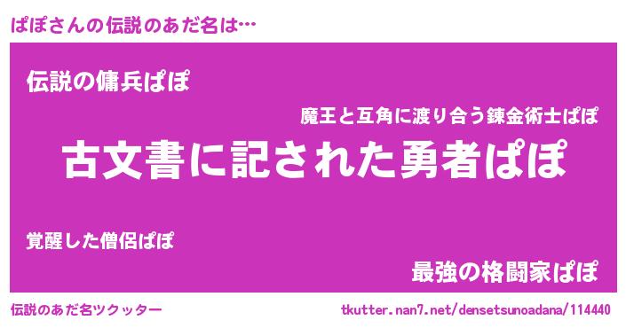 | ヒーロー風カッコイイあだ名 | 『ネオパポ』『スーパーパポ』 |
