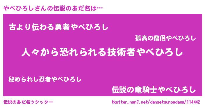 | ヘコむあだ名 | 『やべひろし(笑)』『やべっふぃ~』 |