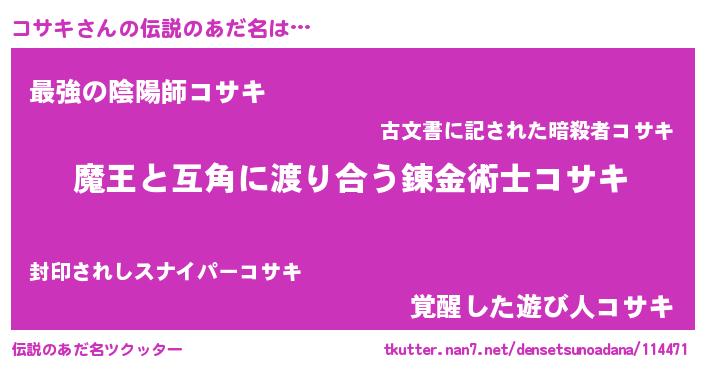 | 女子向けラノベタイトル風あだ名 | 『コサキ恋絵巻』『コサキ伯爵の花嫁』 |