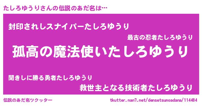 | ヒーロー風カッコイイあだ名 | 『暗黒騎士タシ』『スーパータシロユウリ』 |
