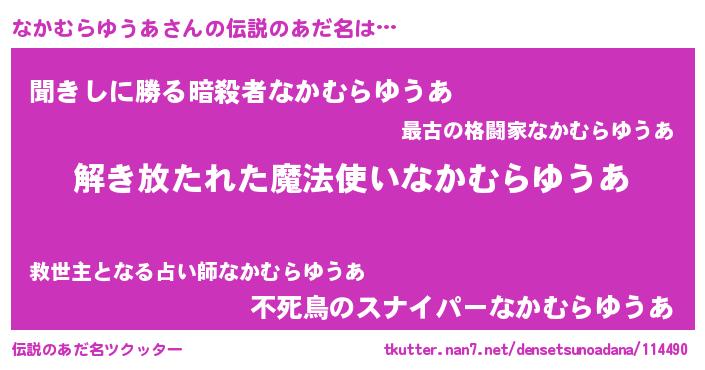 | ヒーロー風カッコイイあだ名 | 『魔戒騎士ナカ』『ネオナカムラユウア』 |