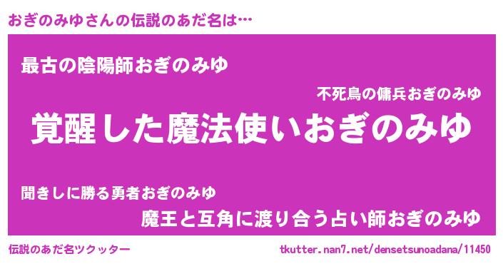 | 女子向けラノベタイトル風あだ名 | 『おぎのみゆの玉の輿計画!』 |