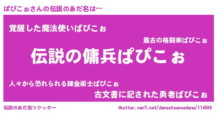 | 意味不明あだ名 | 『自称ぱぴこぉ』『ニラ科ぱぴこぉ属』 |