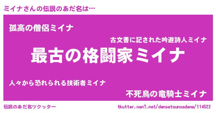 | 意味不明あだ名 | 『ミイナフォーエバー』『自称ミイナ』 |