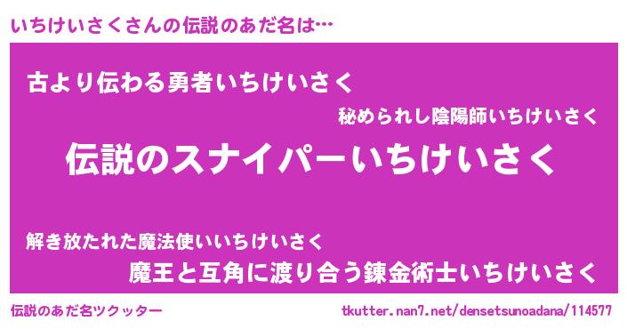 | 意味不明あだ名 | 『住所不定無職いちけいさく(95歳)』 |