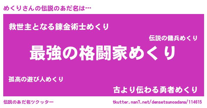 | 意味不明あだ名 | 『住所不定無職めくり(7歳)』『自称めくり』 |