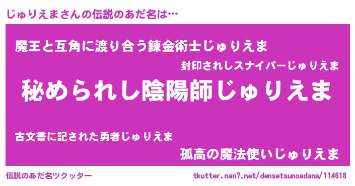 | ファンタジー風あだ名 | 『ゼジュトゥ』『エターナルジュリエマー』 |