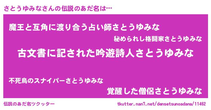 | 意味不明あだ名 | 『永久保存さとうゆみな』 |