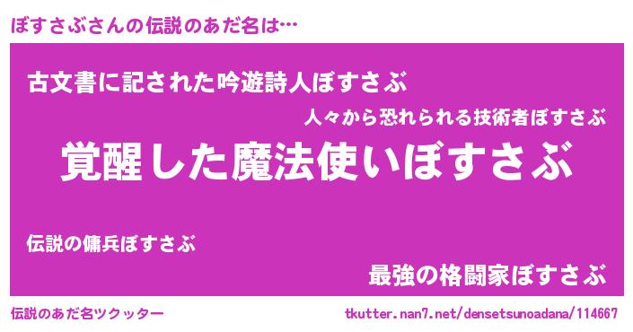 | 意味不明あだ名 | 『とにかく怪しいぼすさぶ』 |