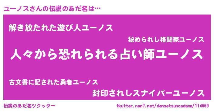 | ポケモン風あだ名 | 『ユックウザ』『ヒユーノス』 |