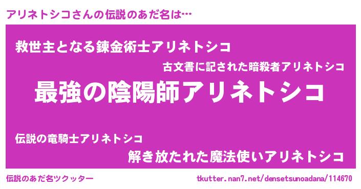 | 女子向けラノベタイトル風あだ名 | 『アリネトシコの婚約者』 |