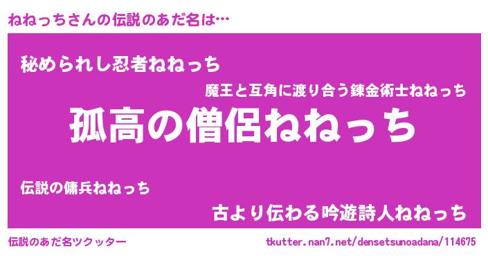 | 胡散臭い通販商品みたいなあだ名 | 『信頼と実績のネックレス…その名も「ねねっち」』 |
