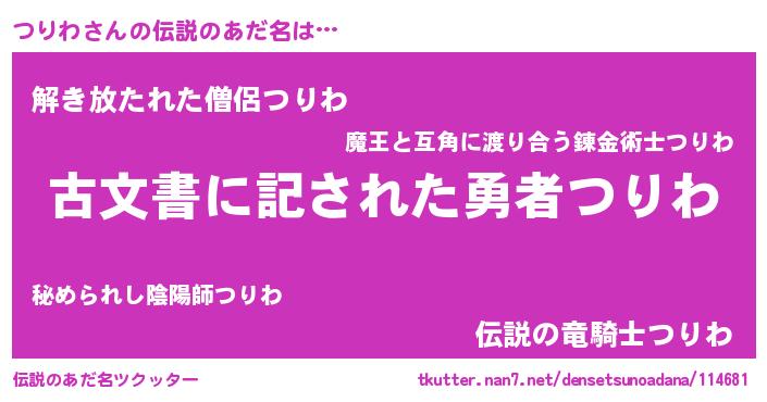 | ヒーロー風カッコイイあだ名 | 『ネオツリワ』『幻影騎士ツリ』 |