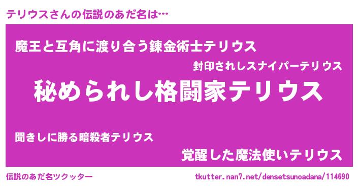 | 欧米人風あだ名 | 『テリウスクリステル』 |