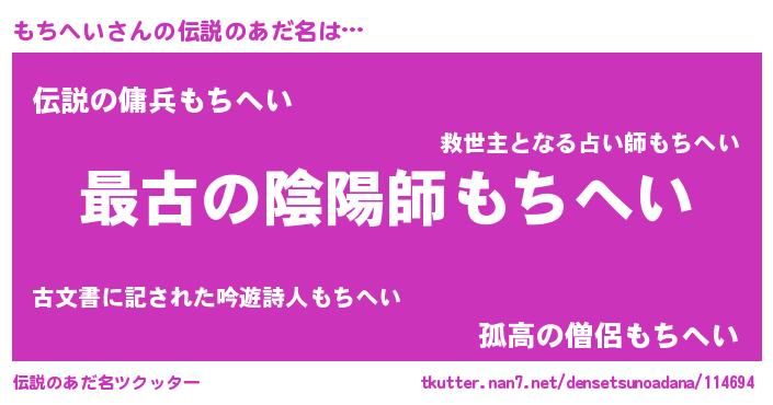 | ヒーロー風カッコイイあだ名 | 『ウルトラもちへいマン』『黄金騎士モチ』 |
