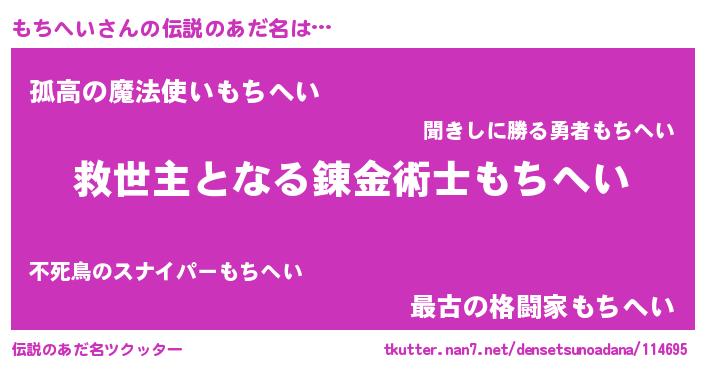 | ヒーロー風カッコイイあだ名 | 『天空の使者もちへい』『幻影騎士モチ』 |
