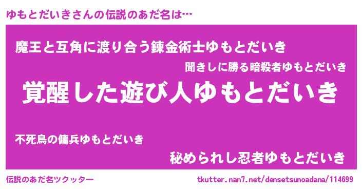 | 意味不明あだ名 | 『自称ゆもとだいき』 |