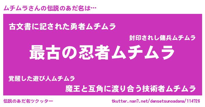 | 意味不明あだ名 | 『ムチムラフォーエバー』 |
