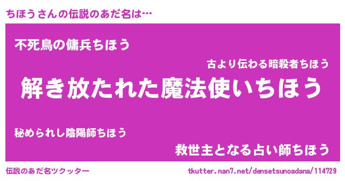 | ヒーロー風カッコイイあだ名 | 『銀牙騎士チホ』『スーパーチホウ』 |
