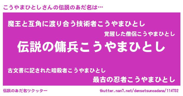 | 男性向けラノベタイトル風あだ名 | 『こうやまひとしの憂鬱』 |