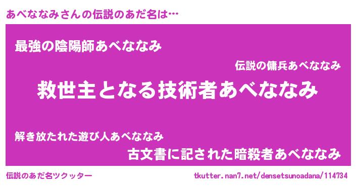 | 男性向けラノベタイトル風あだ名 | 『ノーゲーム・ノーアベナナミ』 |
