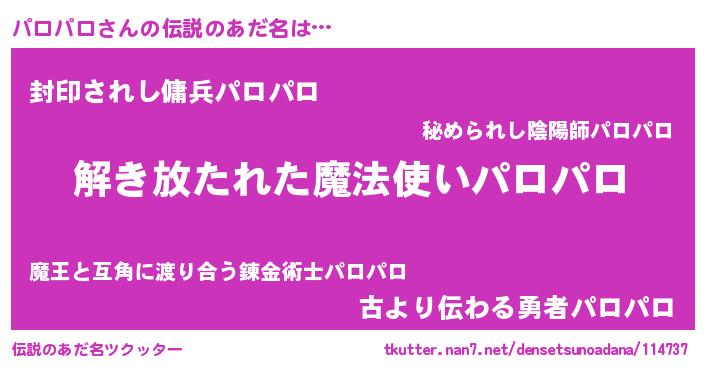 | ヒーロー風カッコイイあだ名 | 『魔戒騎士パロ』『仮面パロダー』 |
