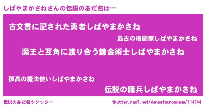 | ヒーロー風カッコイイあだ名 | 『愛の使者しばやまかさね』 |