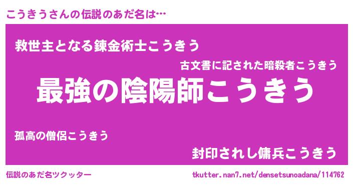 | ファンタジー風あだ名 | 『エターナルコウキウー』『ゼコウトゥ』 |
