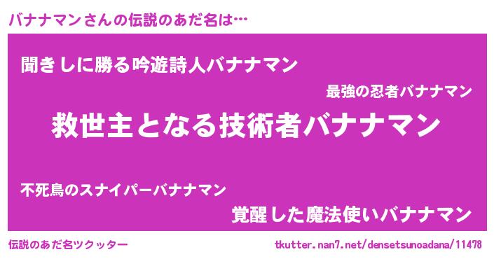 | ヒーロー風カッコイイあだ名 | 『究極戦士バナナマン』『仮面バナダー』 |