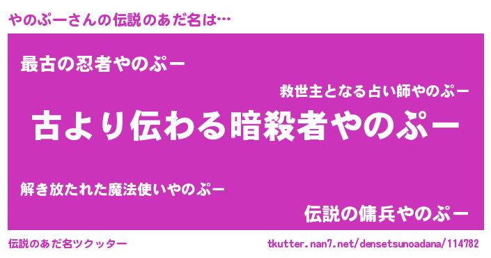 | 意味不明あだ名 | 『永久保存やのぷー』『自称やのぷー』 |